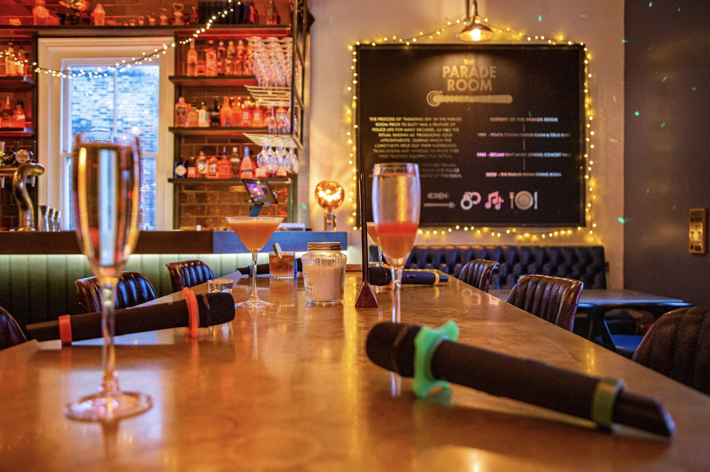 Party Karaoke takes place in the Parade Room for larger groups! Enjoy over 60,000 songs on our 92” HD screen and push button cocktail service!